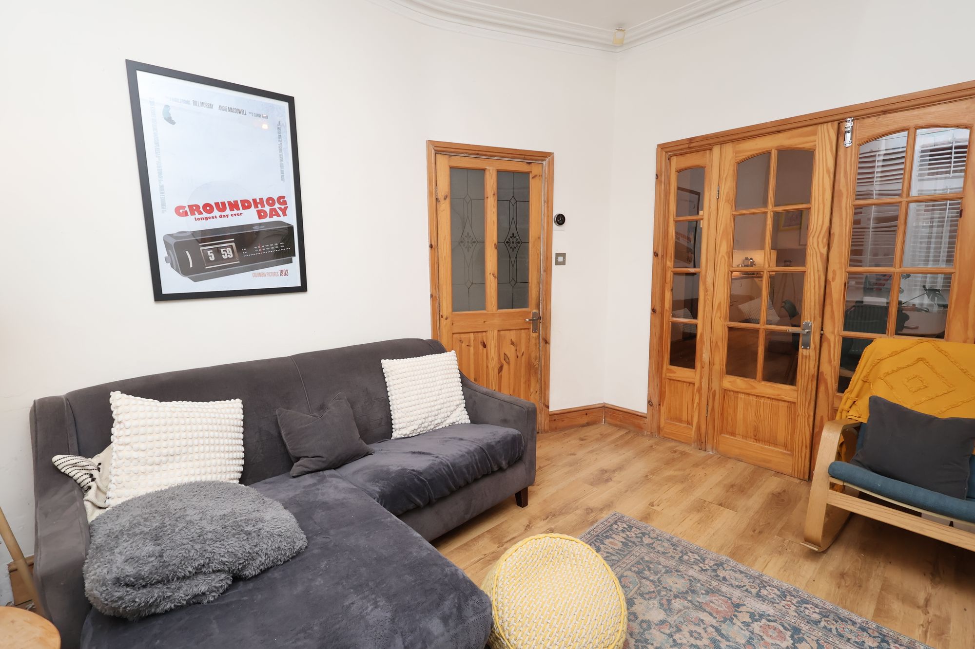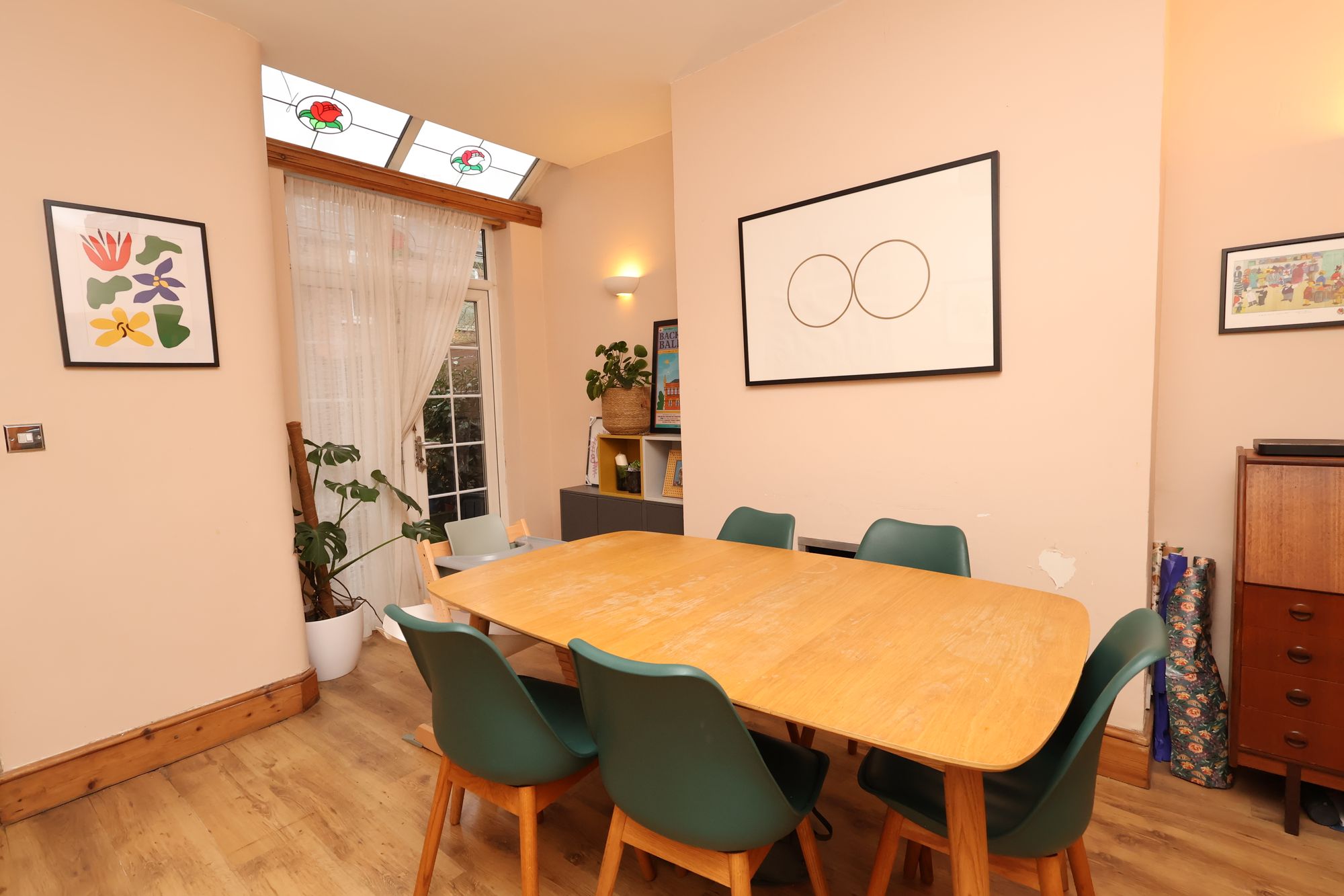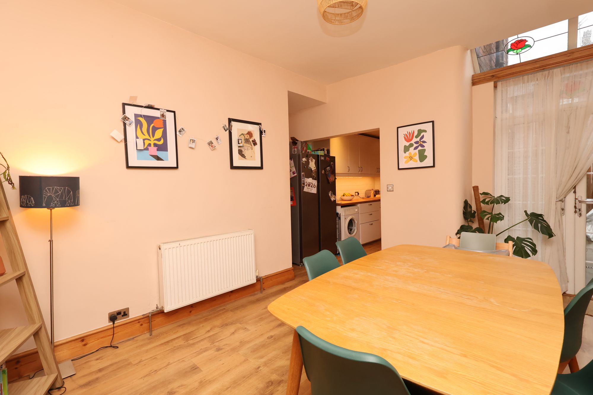 Inside, the property feels bright and welcoming. The open-plan lounge and dining area create a great sense of space and flexibility, whether you’re relaxing at home or entertaining friends. Large windows bring in plenty of natural light, and a number of original features have been carefully retained, adding warmth and personality.