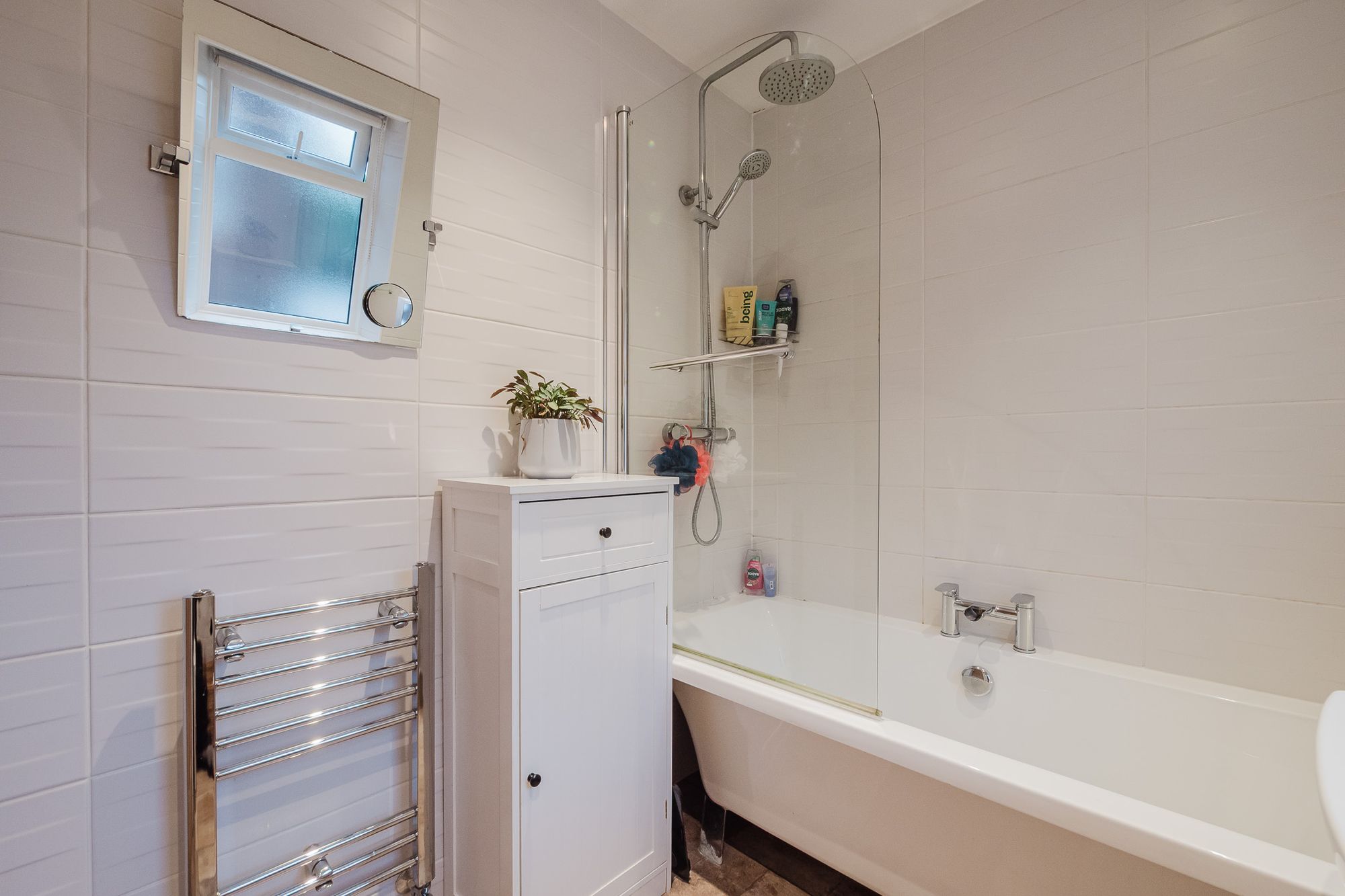 The modern family bathroom is finished to a high standard, featuring sleek fixtures and fittings. Elegant flooring, contemporary lighting, and a neutral colour palette enhance the sense of space and light throughout the home.