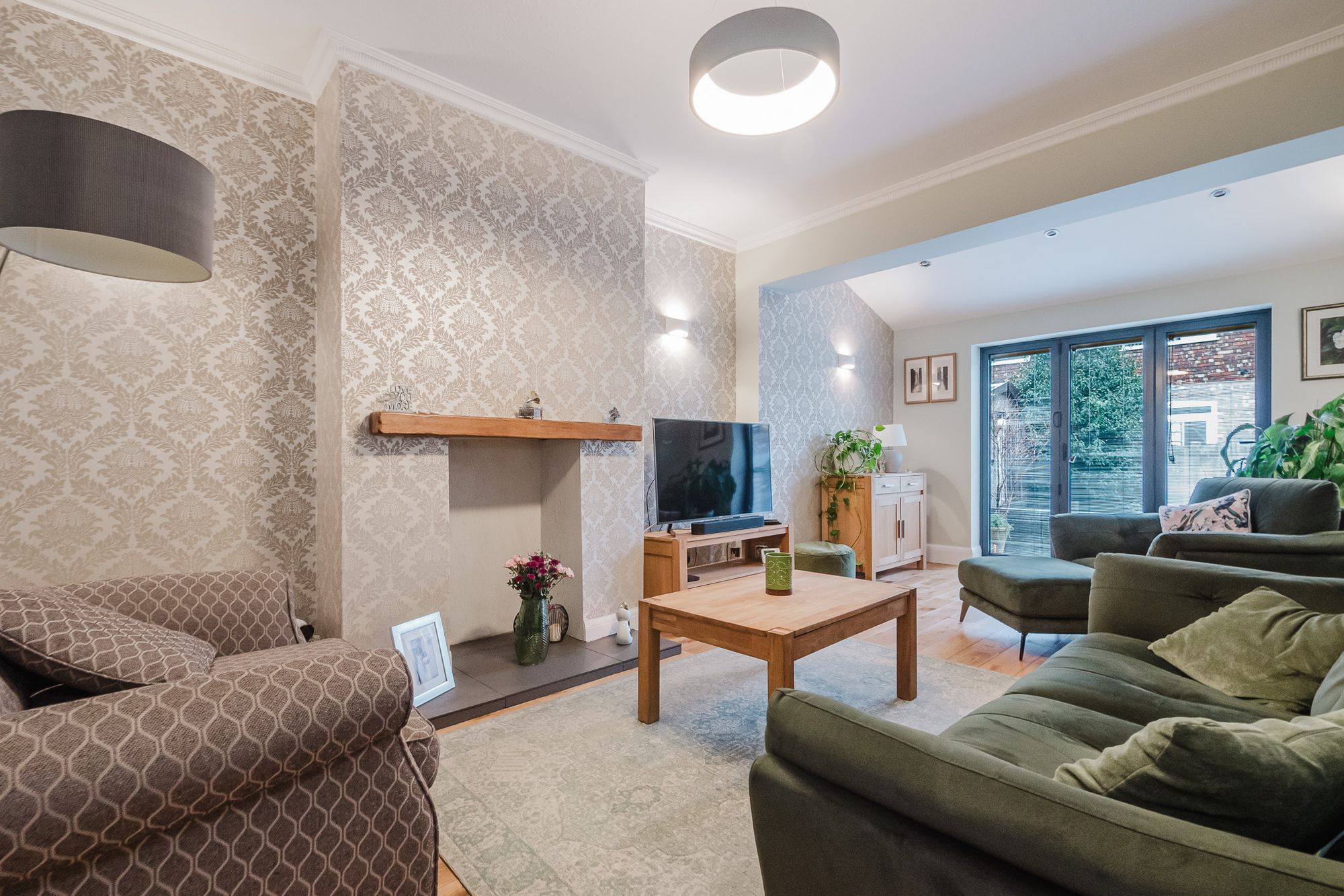Upon entering, a welcoming hallway leads to two generous reception rooms, perfectly suited to both everyday living and entertaining. The main living area enjoys an abundance of natural light, creating a warm and inviting atmosphere, while the second reception room provides excellent flexibility as a dining room, home office, or cosy snug.