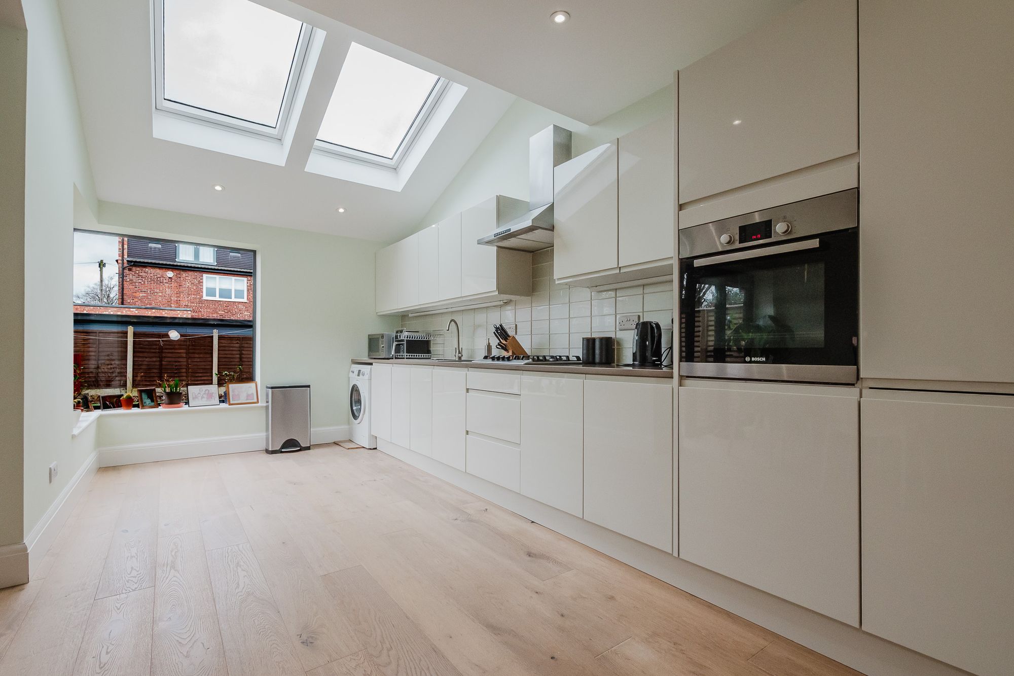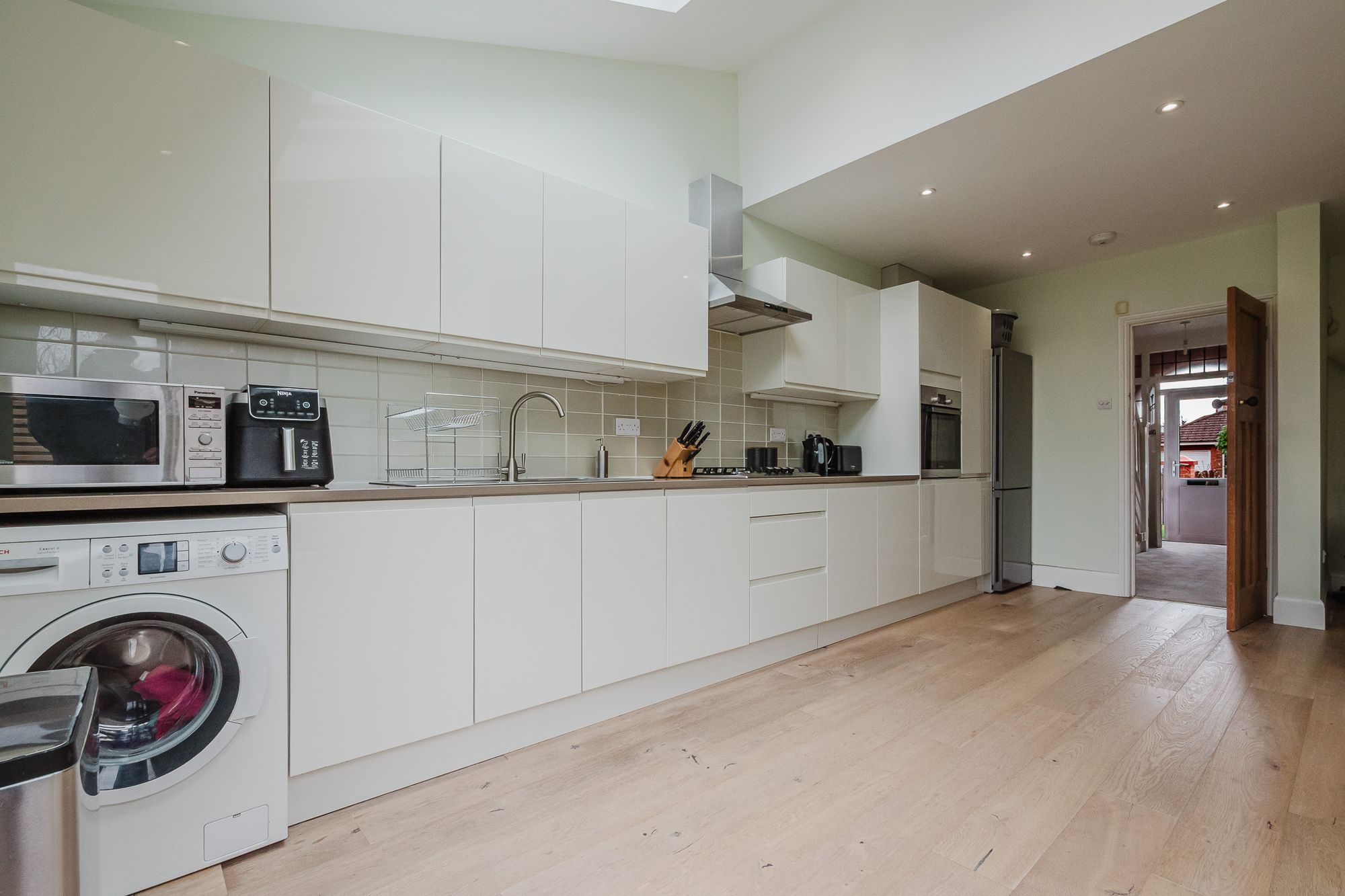 This impressive three bedroom semi detached house offers a superb blend of comfort and practicality, making it an excellent choice for families and professionals alike. Upon entering, you are welcomed by a bright and spacious hallway that leads into a generously proportioned living room, ideal for both relaxing evenings and entertaining guests. The heart of the home is the large, modern kitchen, featuring ample worktop space, contemporary units, and plenty of room for a dining table, making it perfect for family meals or hosting friends. The kitchen also features a contemporary corner window and hardwood floor with underfloor heating.