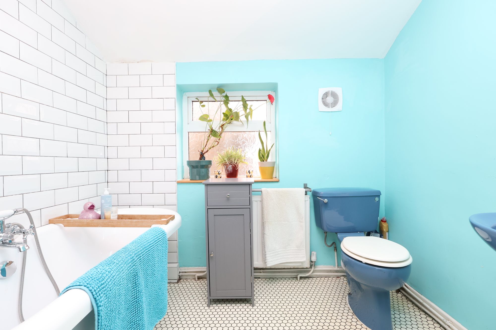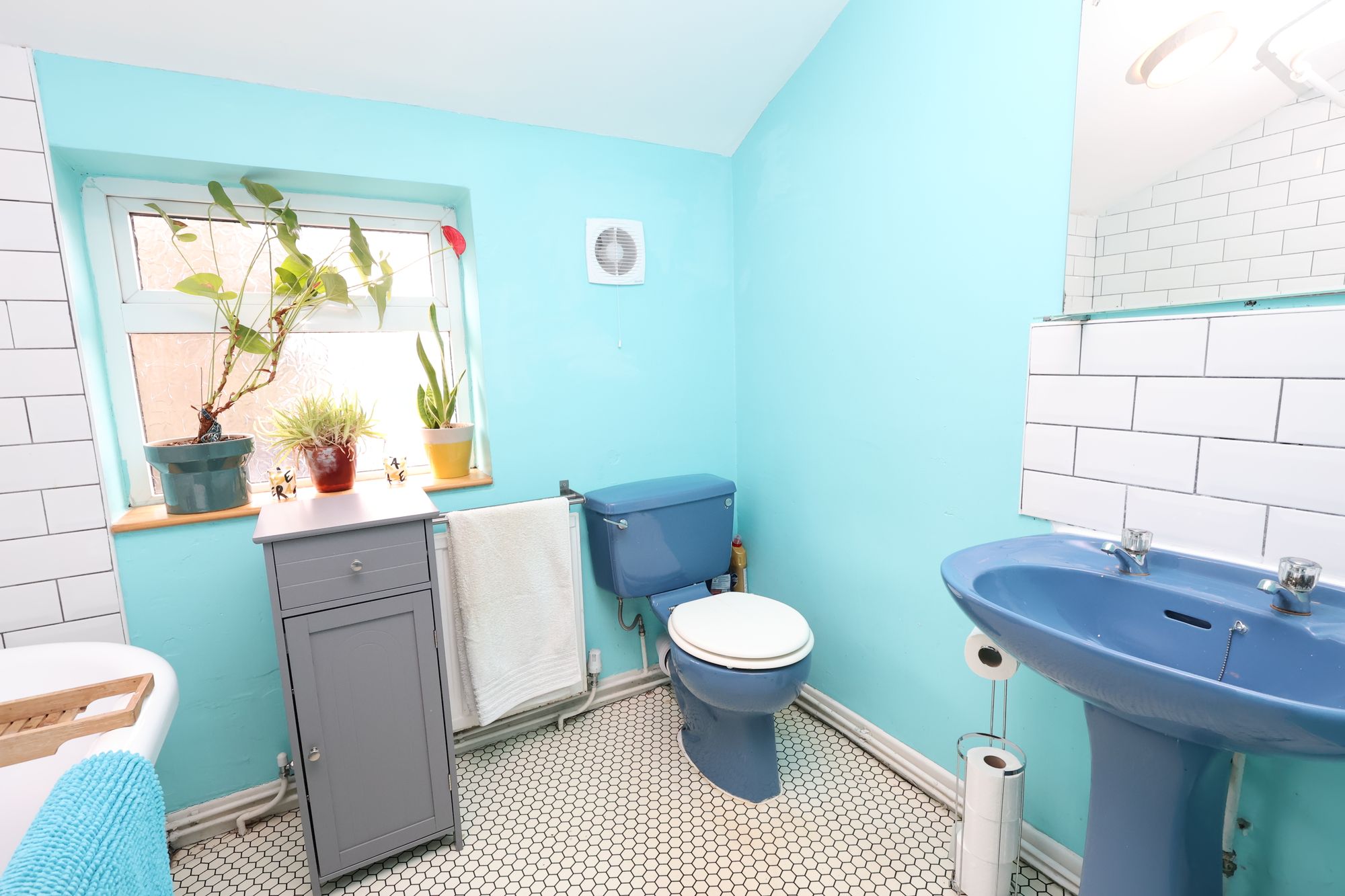 The modern bathroom is finished to a high standard, featuring a contemporary suite with a full-size bath, overhead shower, and stylish tiling. Throughout the property, neutral décor and quality flooring enhance the sense of space and create a move-in ready finish, while large windows flood each room with natural light. The home further benefits from a private rear garden, perfect for relaxing or entertaining.