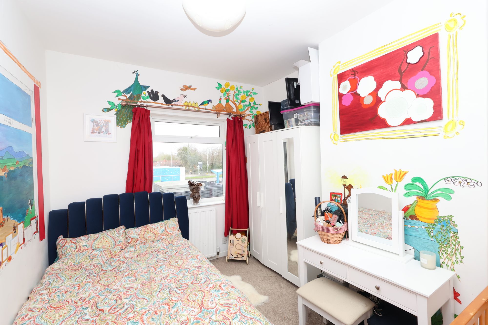 Both bedrooms are generously sized, with the principal bedroom comfortably accommodating a double bed and additional furnishings, while the second bedroom is perfectly suited as a guest room, nursery, or home office.
